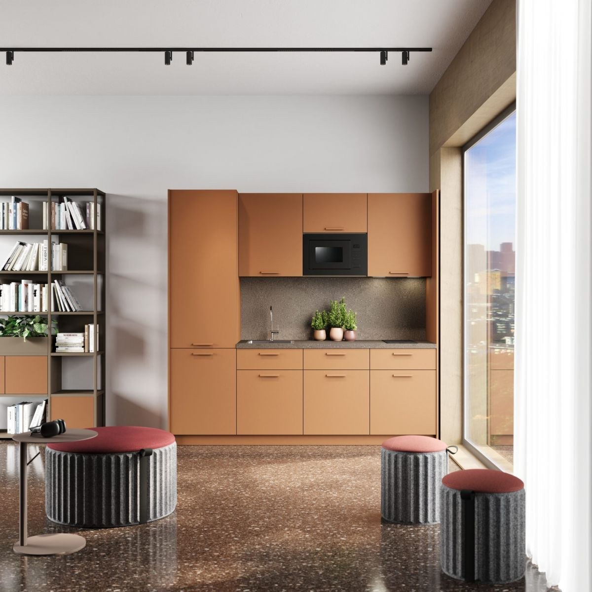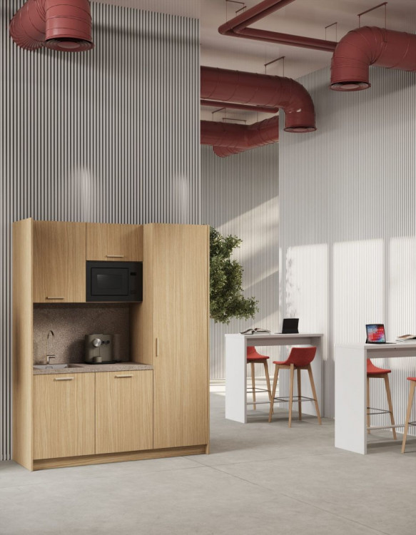 Unisce design contemporaneo, funzionalità ed essenzialità in una soluzione versatile e intelligente, ideale per uffici e ambienti condivisi. Le linee pulite e le finiture curate rendono Office- Kitchen un elemento d’arredo elegante, capace di integrarsi perfettamente in ogni contesto, offrendo praticità e comfort nei momenti di pausa e socialità.