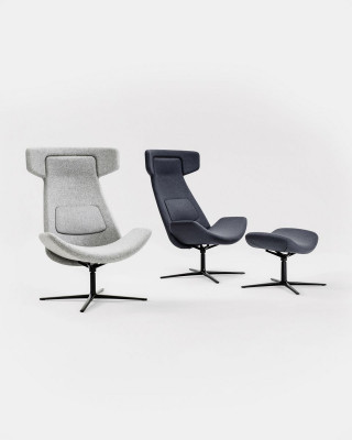 Una collezione di poltrone presidenziali – ergonomiche e leggere – dal caratteristico sedile curvo, declinata anche nella versione contract con panche, poltrone e divani.